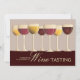 Beautifully hand-drawn wineglasses of a variety of red and white wines are just waiting for the tasting! Make the perfect design for a wine themed party. The wine glasses are delicately shaded and rest against a soft taupe beige background. Offered here on the basic paper stock, this design would also look especially wonderful on linen or felt. Coordinatting postage stamps are also available.