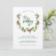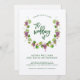 These stylish wedding invitations feature a modern watercolor wreath decorated with purple grapes, green leaves, and vines, on a kraft paper background for a rustic look. Trendy matching green typography is featured in the centre. We have used art from LABFcreations.