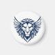 "This strong and symbolic design features a lion's head with a pair of stylised wings extending from its mane. The artwork uses a limited colour palette, likely in shades of blue or black and white, to create a bold and impactful image. The lion's gaze is direct and commanding, conveying a sense of power and guardianship. This design is versatile for a range of products aiming for a strong, regal, or symbolic aesthetic. Imagine it on apparel, logos, emblems, or artwork that represents strength, courage, and leadership."