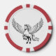 stylish black and white winged horse illustration placed on a classic red and white poker chip design. perfect for casino themes, gambling accessories, fantasy lovers, logo designs, stickers, apparel, and modern graphic projects.