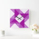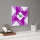 A quilt block pattern in shades of purple & white colours brings this old fashioned art form into the 21st century. This design is only suitable for the square clocks.
