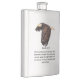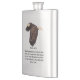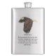 The product is a good size and came exactly as it was pictured. The lid is not attached to the flask, which could be dangerous on drunken nights... The print came out surprisingly well and looks very sharp. Would definitely recommend.