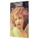 Beautiful celestial dreamlike painting of a lovely young girl with romantic pink roses in her golden hair and with ethereal angelic wings, embodying themes of innocence and purity. Oil on canvas by French artist Guillaume Seignac.