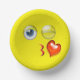 These paper party bowls feature a kiss emoji design.