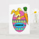 Custom front, add your text, Easter greeting card for a grandson. Card front has a custom text area for a name or you can change the relationship (i.e. brother, nephew, etc.). Cute and very colourful illustration of a bunny grasping a big fresh carrot in orange and green colours. Art, image, and verse copyright © Shoaff Ballanger Studios, 2022.