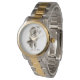 Very good quality watch that looks good whether dressing up or down. The band is sturdy. The watch is rather large so might not work for smaller folks. Recommended as a good gift. Printing is just a touch light but adds a nice touch of personalization.