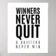This design featuring “Winners Never Quit and Quitters Never Win” is a perfect gift for office, business, gym, home or for yourself that love inspirational, motivational or positive quotes.