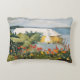 The cushion is small to medium sized. It can be washed. It is well constructed. The material used is pleasant and feels decent quality. It has a very slight plush feel which is good. It is well labelled and its care clearly stated. Theres nothing not to like about it. All in all a good item. The deduction of one star overall is due to long delays in delivery to the UK. It's not clear if this was due to Zazzle or somewhere else in the chain as I did not receive status updates of dispatch or progress. I cannot comment anymore on that other than to say that was our experience but it may not be the same for you. The printing was surprisingly close to what we were expecting. Its an art piece and on material so its hard to assess the precision of printing but it seems close to the original. The soft lines are reproductions of the original. The colour is a fair reflection of the painting. This was printed in the US and it looks like US quality. No issues.