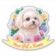 Winsome Bichon Frisé with Yellow, Pink & Purple Flowers Sticker, a heartwarming and personalised creation designed especially for women and girls who hold a special affection for the winsome Bichon Frisé dogs and the delightful beauty of assorted yellow, purple, and pink flowers. This charming sticker features a friendly Winsome Bichon Frisé with bright, expressive eyes and an adorable, playful face that radiates joy. The sticker is adorned with a beautiful array of assorted yellow, purple, and pink flowers, creating a scene that captures the essence of your beloved pet's winsome nature. To add a personalised touch, an elegant yellow ribbon is thoughtfully provided, offering a perfect space to proudly display your cherished pet's name.