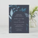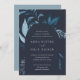 Our Winter Azure wedding invitation surrounds your wedding day details with an arch of vibrant watercolor foliage. A modern yet organic choice for winter or spring weddings featuring intricately painted botanical elements. Colorway: Winter Azure, a medley of frozen blues on a navy background.