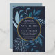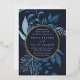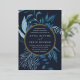 Our Winter Azure wedding invitation surrounds your wedding day details with a circular border of vibrant watercolor foliage in wintry colours. A modern yet organic choice for winter or spring weddings featuring intricately painted botanical elements. Colorway: Winter Azure, a medley of frozen blues on a navy background.