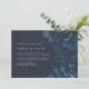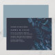 Our Wild Azure wedding invitation features your wedding details accented by winter watercolor foliage in icy shades of blue on a navy background. A modern and elegant choice with minimalist lettering for a unique take on the botanical look.