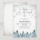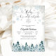 Celebrate the joy of a new arrival with this elegant winter baby shower invitation featuring snowflakes and a forest of snow-covered evergreen trees. The design blends whimsical charm with timeless sophistication, highlighted by stylish cursive and serif fonts. Perfect for seasonal gatherings, this invitation sets the tone for a cosy celebration while ensuring your event details shine. Ideal for parents-to-be who love winter themes, its a beautiful way to invite loved ones to share in the excitement.