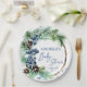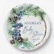 Winter baby shower monogrammed paper plates, watercolor dusty blue winter berries on snowy pine branches snowflakes baby shower personalized paper plates, winter baby shower party supplies, gender neutral winter baby shower personalized printed paper plates