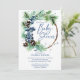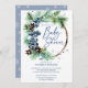 Winter baby shower editable template invitation instant digital download, watercolor dusty blue winter berries on snowy pine branches snowflakes invitation modern casual font