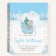 This cute and fun notebook features an adorable bear in a blue sleigh surrounded by snow, mountains and pine trees. Beautiful faux glitter flower arrangements and silver confetti add a festive touch. The text combines handwritten script and sans serif fonts for a stylish and modern look. It can be personalised with your baby's birth stats, such as name, size, date and time of birth, or if you would like to give it as a shower gift you are able to edit and remove text.