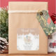 This cute and fun watercolor baby shower thank you sticker features an adorable bear in a brown sleigh surrounded by snow, mountains and pine trees. The text combines handwritten script and sans serif fonts for a stylish and modern look. Beautiful faux glitter flower arrangements and silver confetti add a festive touch. This is perfect for a Christmas or winter baby shower.