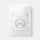 Winter baby bear-themed favour bags in the soft blue, white and grey colours with a cute polar bear and snowflakes for boy's winter 1st or any Birthday party. Easily personalise the text. - Kate Eden Art