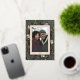 Introducing our enchanting foil Christmas card, where timeless elegance meets the beauty of the season. The rich charcoal black background, artfully distressed with soft white accents, sets a captivating tone. Your favourite photo will shine, surrounded by a double foil and cream frame that adds a touch of refinement. Embrace the spirit of winter with a breathtaking frame of lush greenery, featuring holly adorned with rich red berries, mistletoe with its delicate white berries, and the timeless allure of green pine. This winter wonderland-inspired design captures the essence of the season and exudes natural grace and festive charm. Created by Simply Farmhouse Press.