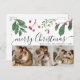 Winter Berries Elegant Script 3Photo Christmas Holiday Postcard