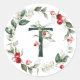 This set of 20 small 1.5" round monogram envelope seals feature a bright red and forest green winter berry wreath with a decorative sage green monogram initial.