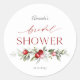 Add an elegant seasonal touch to your bridal shower favors and invitations with this watercolor winter berry sticker. Featuring delicate red berries, soft greenery, and modern calligraphy in burgundy and gray, this design blends festive charm with timeless sophistication. Perfect for labeling gifts, envelopes, or décor accents during your winter celebration.