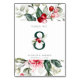 This delicate watercolor greenery border has traditional Christmas colours, forest green, olive green and cranberry red on bright white. The table number is featured in the centre in forest green with red berries and greenery. The remaining wedding details are directly below. All text can be edited to suit the needs of your event. Coordinates with other items from the Winter Berry Collection.