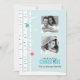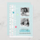 Adorable custom holiday card features a beautiful vector illustration of a whimsical winter scene of christmas decorations hanging on birch trees on a beautiful light blue background. Personalise with your family pictures and a message of your choice.