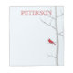 Winter Birch Tree Note Pad. Red cardinal wits on a winter birch tree. Note pad makes a great gift for anyone. Blue background can be edited to fit any colour. Personalise it too.