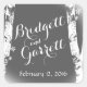 Grey and white, chalkboard inspired winter birch trees and snowflakes sticker with couple's names and wedding date.