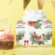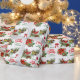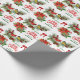 On this pretty personalised Holiday wrapping paper are two winter birds, a red cardinal and a gold finch, perched in a pine bough. Along with the bird images is a red poinsettia bouquet, and red bows are scattered throughout. The red and green text says "We wish you a MERRY CHRISTMAS" with your custom text in green below it. This paper looks festive in either the matte or the semi-glossy finish.