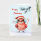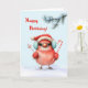 A whimsical winter birthday card featuring an adorable red bird in a Santa hat with candy canes, standing in the snow under a snowy pine branch. Perfect for celebrating a special birthday that falls during the holiday season. A lighthearted, festive choice to spread cheer and smiles.