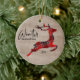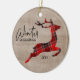 Red and black plaid reindeer is leaping through the air against a tan woven linen background. Reads "Winter blessings" and is personalised with the date. This classic ornament will look wonderful on your country, log home or farmhouse Christmas tree! Personalise with the year.
