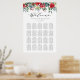 Please find your seat. This floral seating chart allows you to assign the seats of your guests. It features a watercolour garland of poinsettia flowers, red roses, pinecones, and greenery. Personalise by adding names, dates, and seating details. This floral seating chart is perfect for winter weddings and other events.