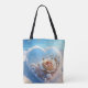 Experience the magic of winter with this shoulder tote design, featuring a heart-shaped snow crest adorned with a blooming rose and fluttering butterflies, set against a crisp blue sky.