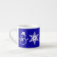 Winter Blue and White Cute Snowman and Snowflakes Pattern Blue and White Espresso Mug Unique Personalised Christmas Gift for Coffee Lovers.