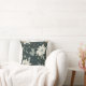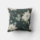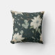 White flowers with light blue accents, soft green leaves, and gold outlines make a stunning pattern on both sides of this pretty pillow. The watercolor images are placed on a dark dusty blue background. Nice for the winter season, but attractive all year long.