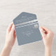 This elegant all-in-one winter wedding invitation features cool dusty blue tones, delicate white floral sketches, and a classic monogram for a timeless feel. The foldable format includes RSVP and guest details—no envelopes needed. Ideal for December weddings or sophisticated winter ceremonies.