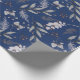 Winter Blue Leaves Berries Pine Festive Watercolor Wrapping Paper
