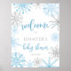 Winter blue silver snowflakes baby shower Welcome Sign.
