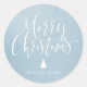 Winter Blue Simple Calligraphy Merry Christmas Classic Round Sticker