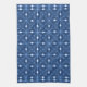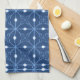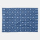 Winter hand towel with a pattern of snowflakes and ice crystals in light blue and white on a dark blue background.