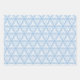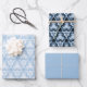 A set of three decorative wrapping paper sheets in a soft winter solid blue, a night blue swirl pattern, and a snowy blue swirl print. The prints feature intricate swirl patterns in contrasting shades for a sophisticated gift giving presentation.