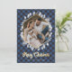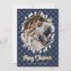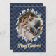 Winter Botanicals Blue Gold Plaid Photo Christmas Holiday Card