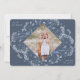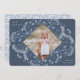 Elegant holiday photo card features a favourite photo surrounded by a geometric border of delicate blue botanical foliage and tiny watercolor flower blossoms on a slate blue background. "Joy and light" appears at the upper left corner in white lettering, with your family name at the lower right.