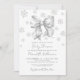 Celebrate the winter season and the mum-to-be with this sweet and classic baby shower invitation featuring a soft white and grey watercolor bow. Light grey watercolor snowflakes gently fall from the top, reaching about halfway down the design to create a subtle, wintry feel without overwhelming the clean layout.