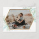 A budget friendly option, this Christmas postcard frames your favourite photograph with a modern and on trend faux gold hexagon frame accented with wintery blue and green watercolor painted branches. Easy to personalise text on the back side lets you send your own custom message of holiday cheer in elegant, deep green typography.