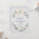Celebrate the bride-to-be with this elegant winter-themed bridal shower invitation featuring a luxurious cream satin bow, delicate snowflakes, and soft floral arrangements in blush pink and dusty blue. The sophisticated neutral palette with white roses, eucalyptus, and pinecones creates a romantic winter garden aesthetic perfect for holiday or winter weddings.