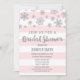 Winter Bridal Shower Pink Stripes Silver Snowflake Invitation
