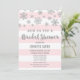 Bridal shower invitations for winter or Christmas with silver snowflakes and light blush pink stripes.